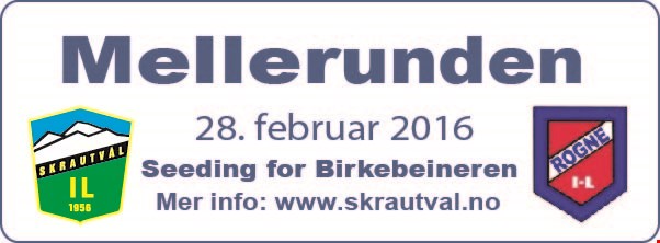 Velkommen til Mellerunden 23. februar 2020.Sted: Valdres skisenter, Skrautvål. Svarthamarvegen 260. Start: søndag 23. februar kl 11.00 for konkurranseklassene (seedingrenn). Uten tidtaking start kl 0900.